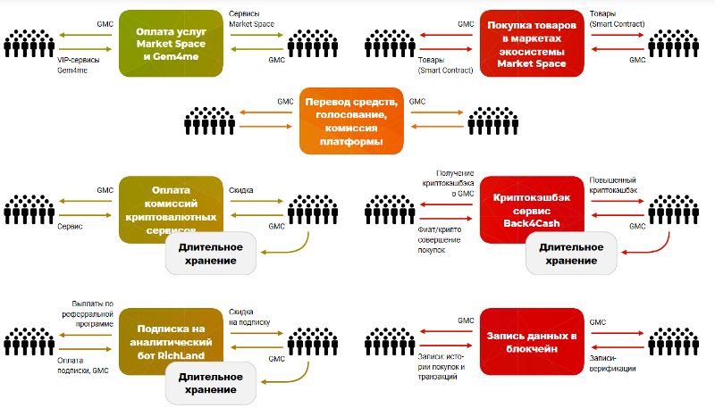 Позволяет децентрализовать работу Gem4me Market Space, а также снизить издержки при осуществлении трансграничных операций и сделать бизнес-процессы полностью прозрачными